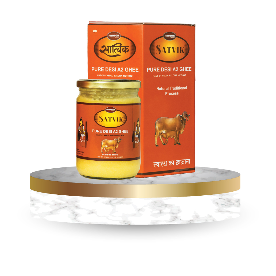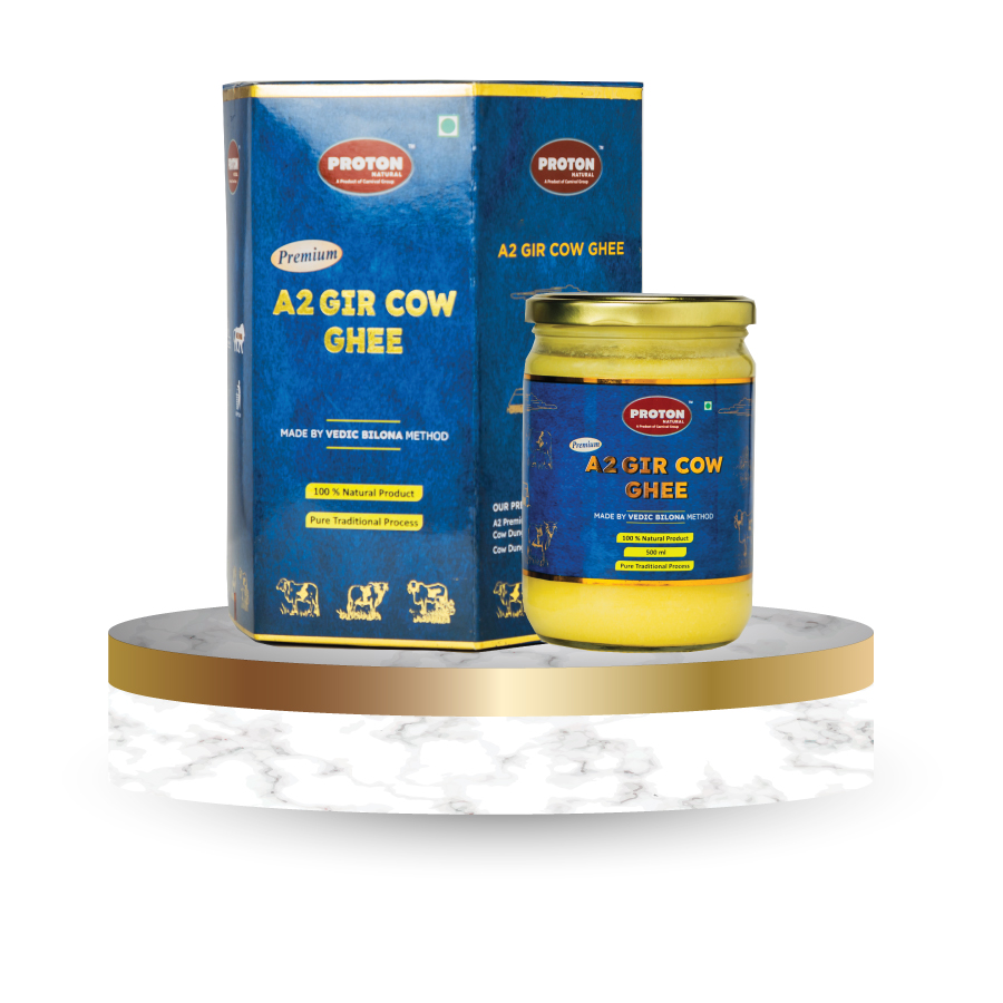 Proton A2 Gir Cow Ghee is made from milk collected from grass-fed Desi Gir Cows. Our Ghee is full of nutritive fatty acids, an ideal fat source for an Indian vegetarian diet. Regular consumption of our high-quality A2 ghee helps reduce cholesterol, improves the heart’s functioning and reduces joint pain. It keeps the body healthy and increases its potency.